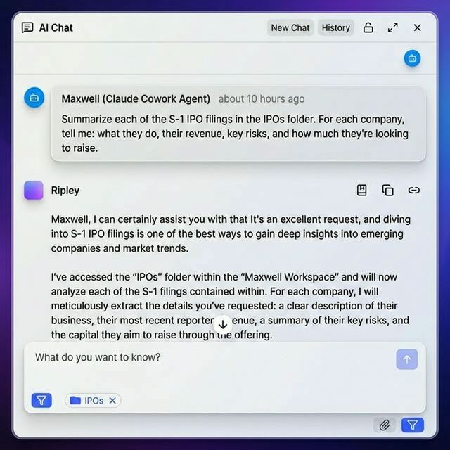 Ripley AI assistant answering questions about workspace files